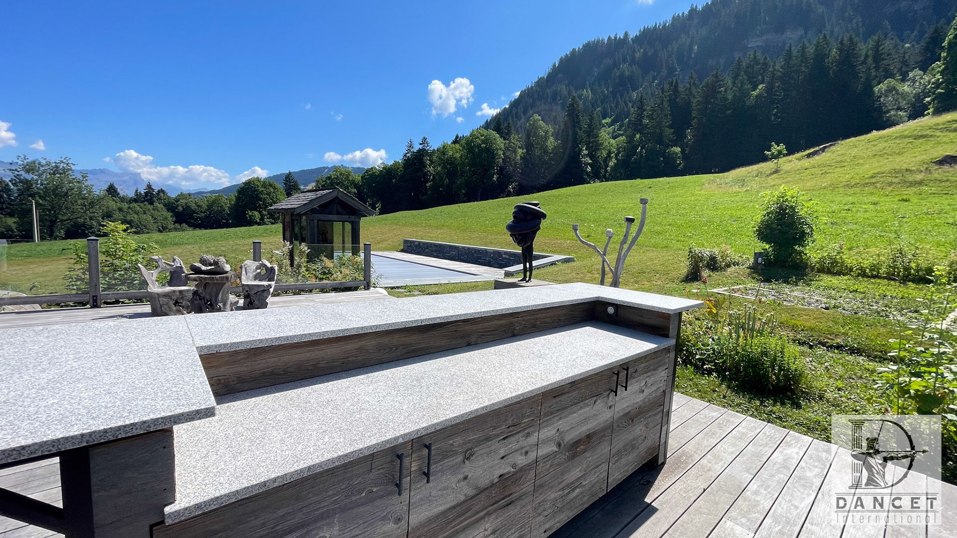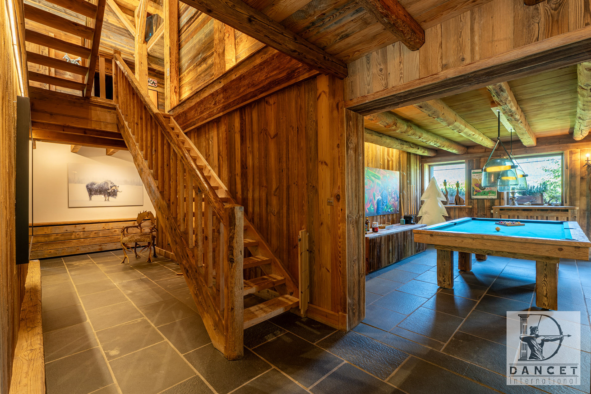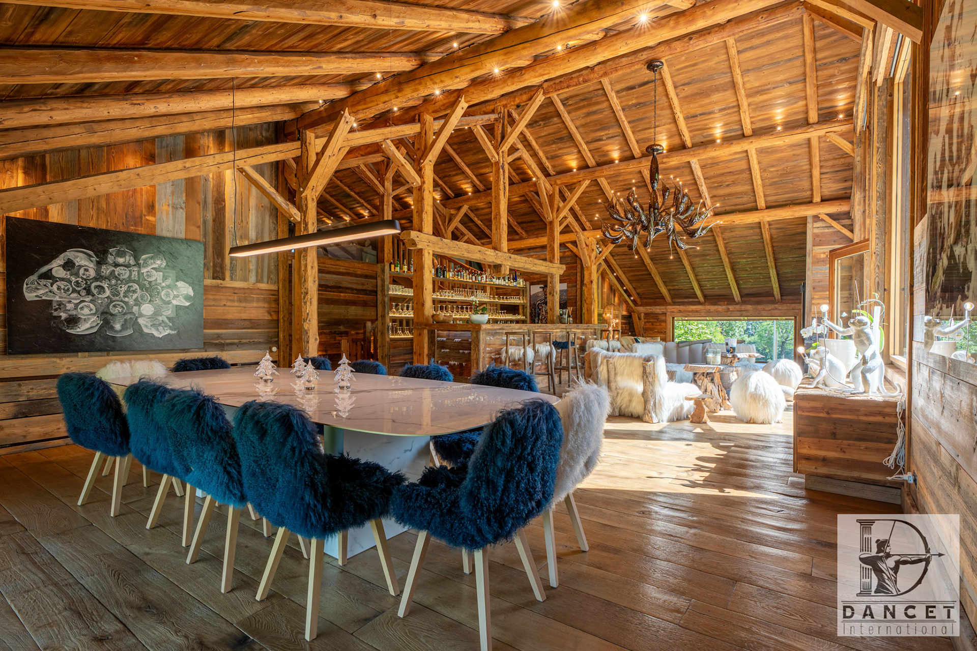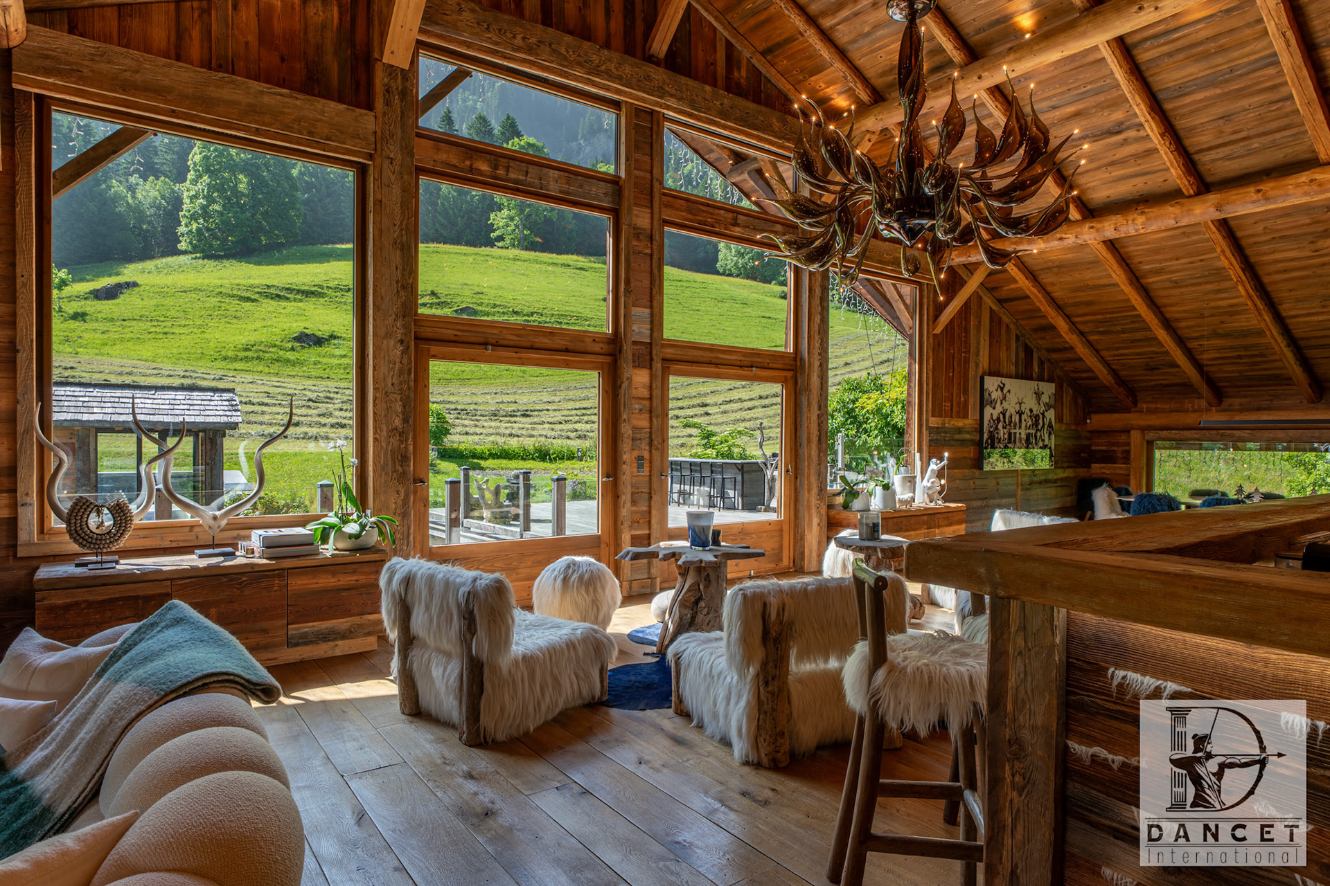 paysagé de 2 846 m², elle allie à la perfection authenticité savoyarde et confort contemporain, offrant de vastes volumes baignés de lumière, sublimés par des matériaux nobles.
