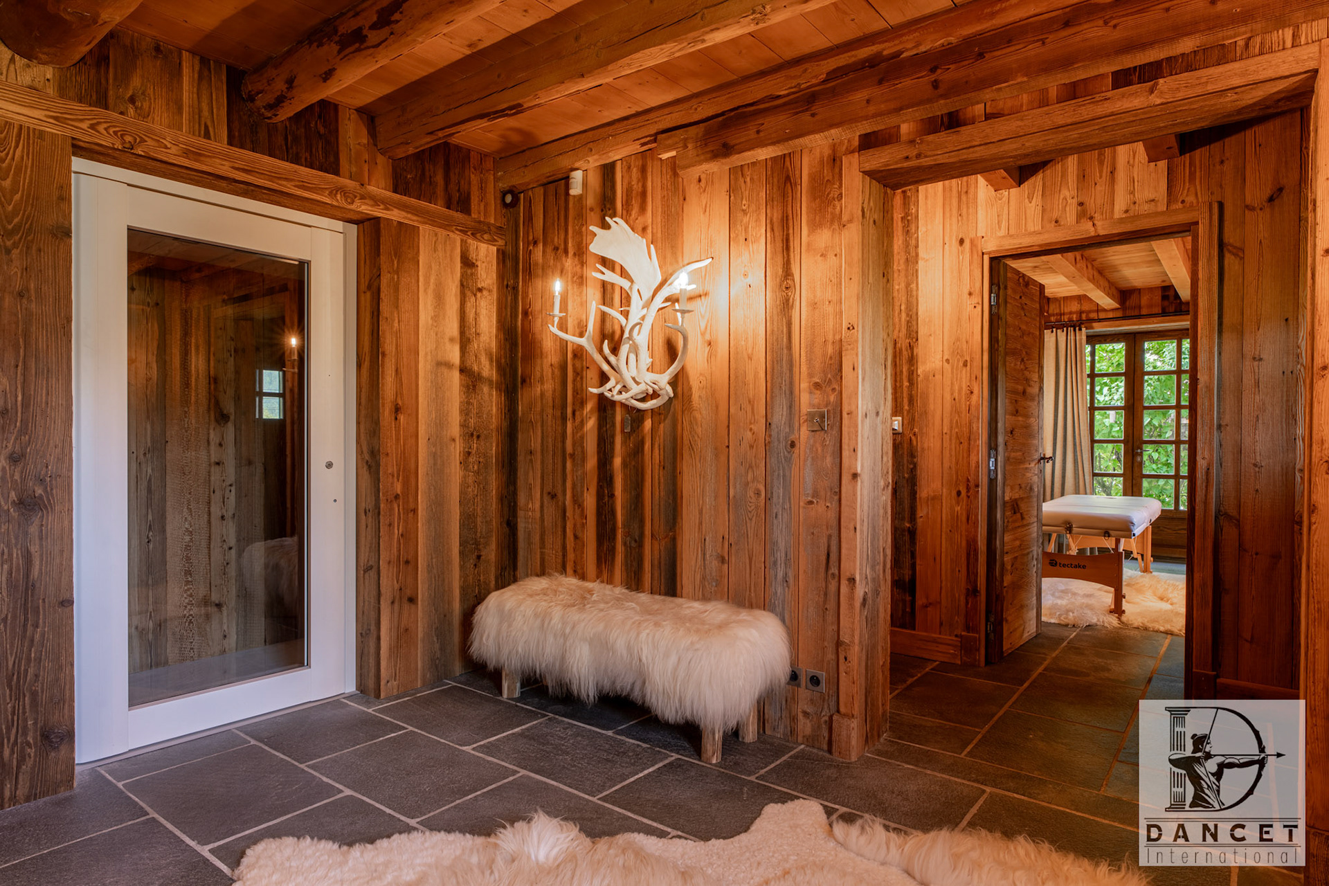 Entrance with large ski room • Private elevator • 4 en suite bedrooms • Massage room • Laundry room • Wine cellar • Relaxation area with fireplace